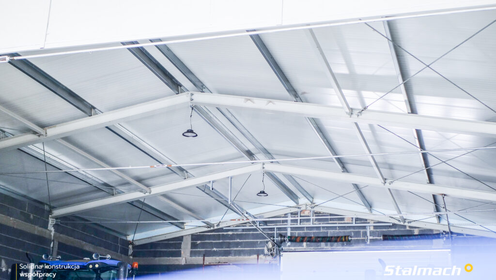 Konstrukcja obiektu została oparta na solidnych wiązarach dachowych, zapewniających odpowiednią nośność i trwałość. Zakres naszych prac obejmował wykonanie projektu konstrukcji stalowej, produkcję elementów oraz ich profesjonalny montaż.