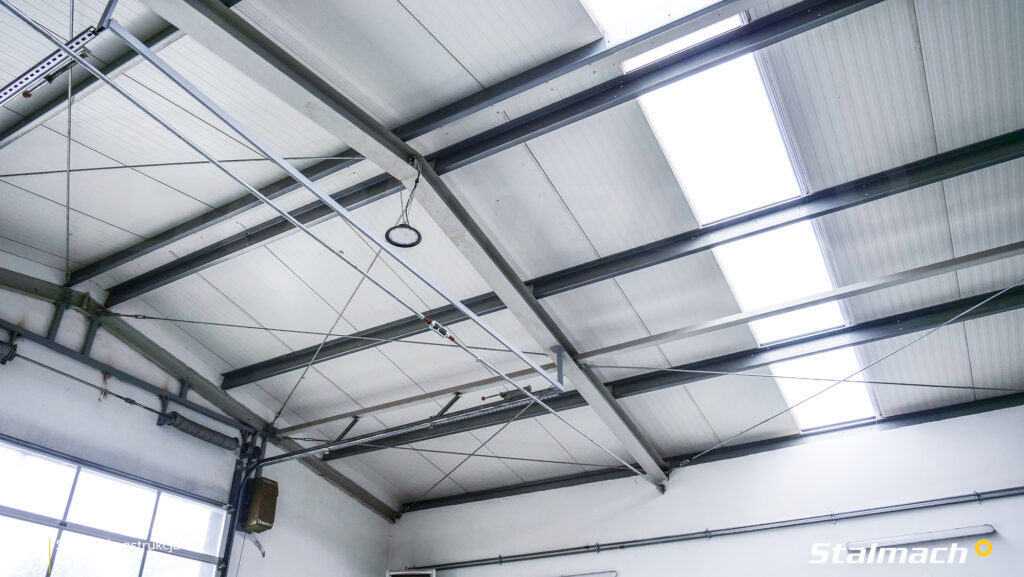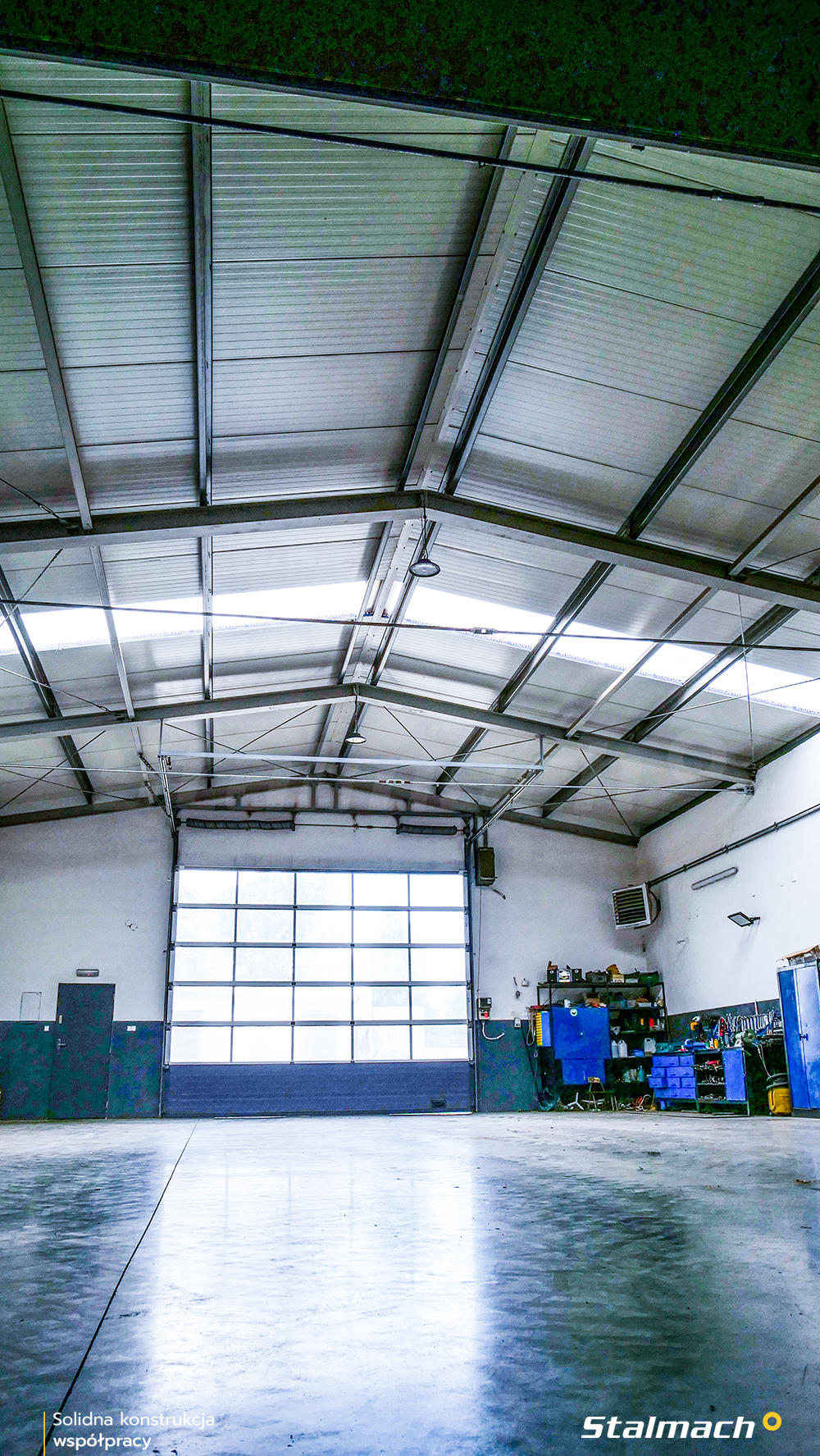 W dachu hali zamontowaliśmy świetliki dachowe, który zapewnia dostęp naturalnego światła do wnętrza. Całość prac została zrealizowana kompleksowo, z dbałością o każdy szczegół konstrukcji i wykończenia.
