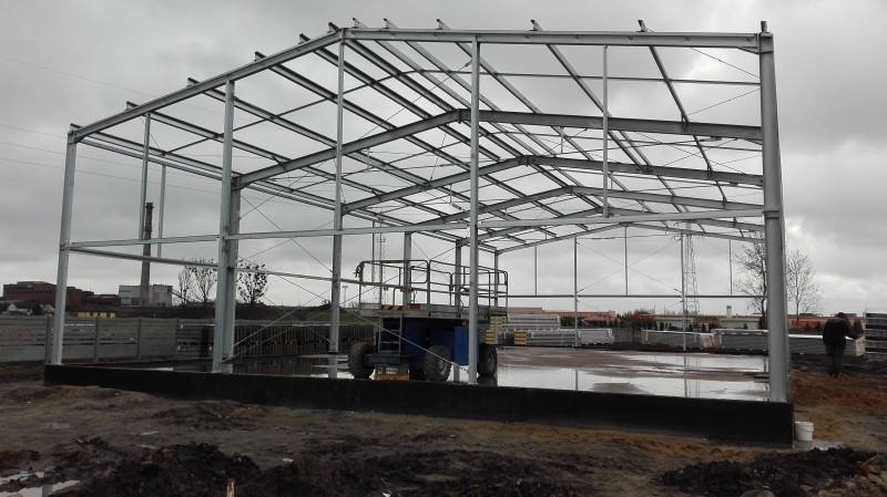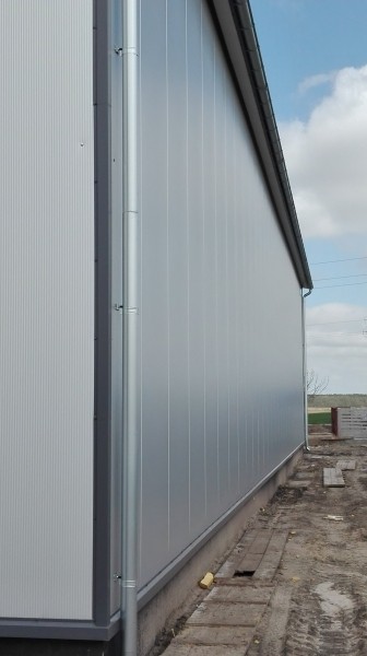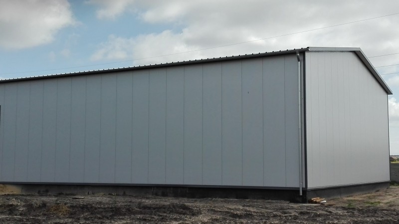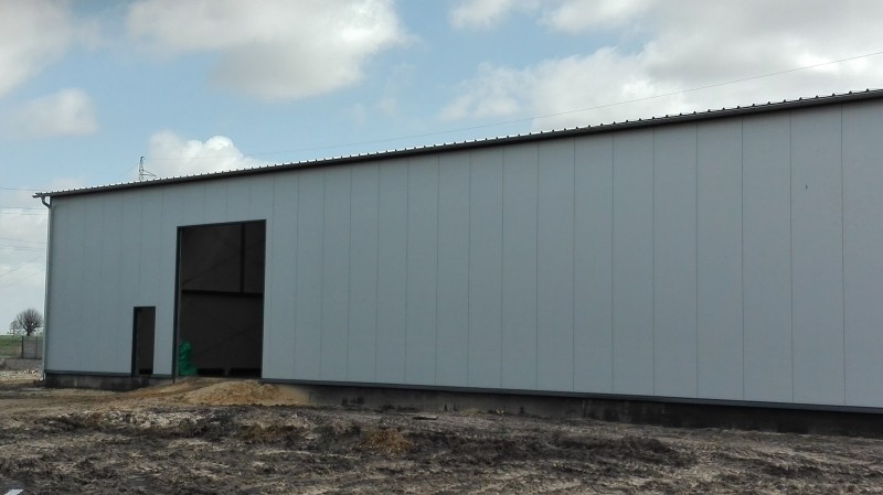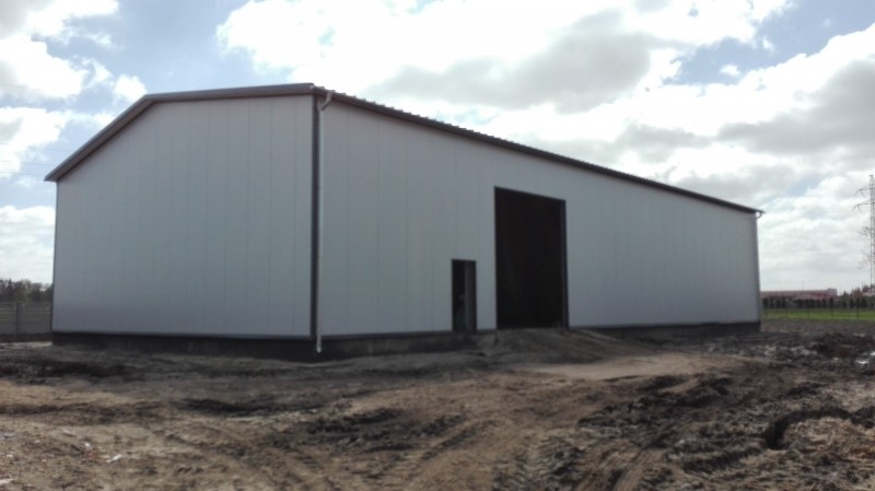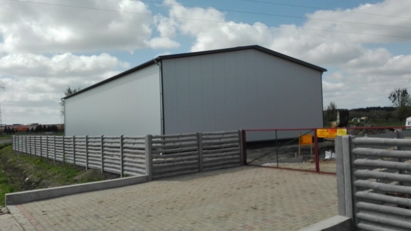 Budowa hali magazynowej 30x16x6m w obudowie z płyty warstwowej 120mm w kolorze RAL 9006 z obróbkami RAL 7016.
