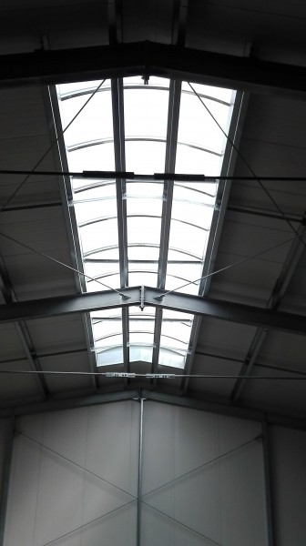 Obiekt został doświetlony w części świetlikiem kalenicowym łukowym.