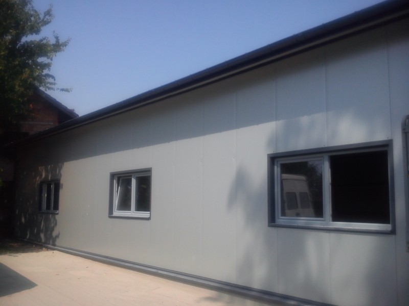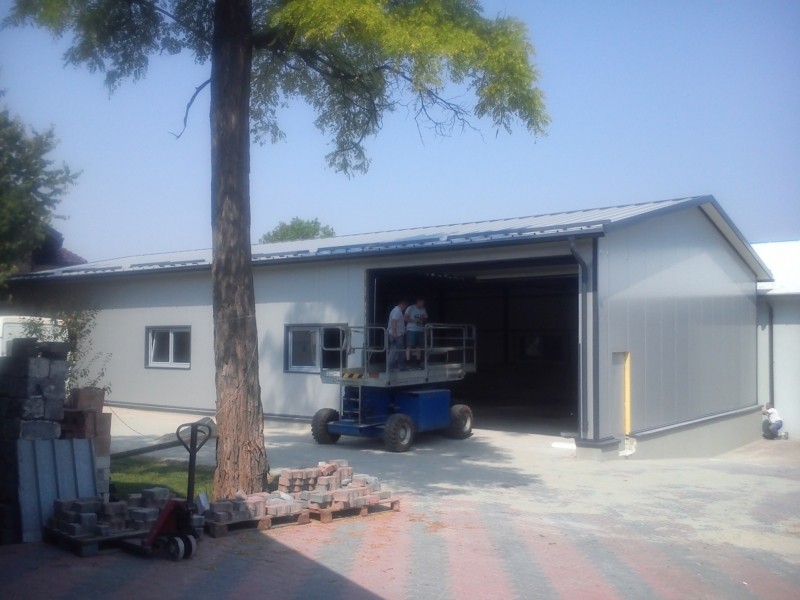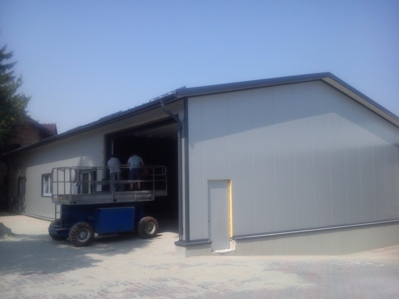 Modernizacja konstrukcji i wymiana obudowy dachu i ścian na istniejącym budynku magazynowym.