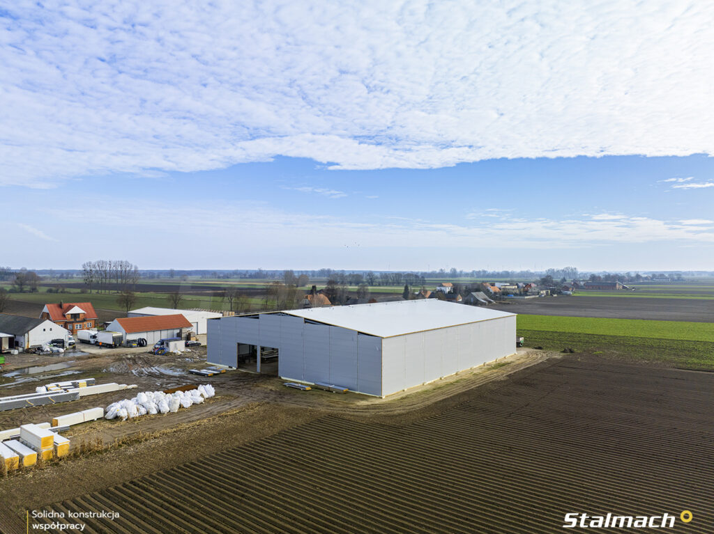 Realizujemy budowę hali przeznaczonej do przechowywania płodów rolnych w okolicach Rudy Komorskiej, w województwie wielkopolskim.